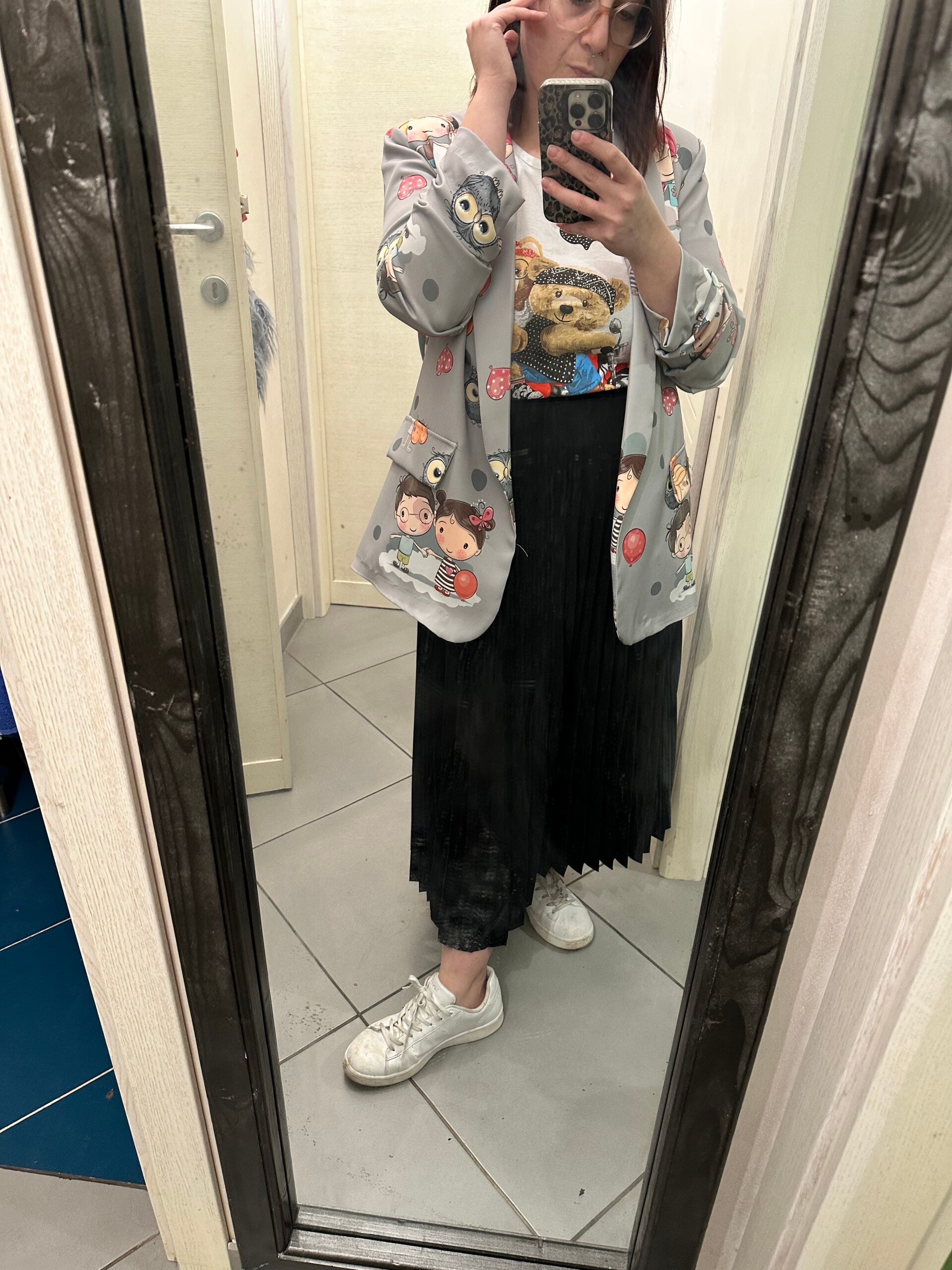 Questa gonna presenta una fitta plissettatura a fisarmonica, progettata per catturare la luce e creare un movimento ipnotico a ogni tuo passo.Le pieghe verticali non sono solo un dettaglio di stile, ma allungano visivamente la silhouette, offrendo un fit impeccabile e slanciato.Comfort h24: Dotata di una morbida fascia elastica in vita, garantisce una vestibilità perfetta senza rinunciare alla comodità, adattandosi dolcemente alle tue forme.